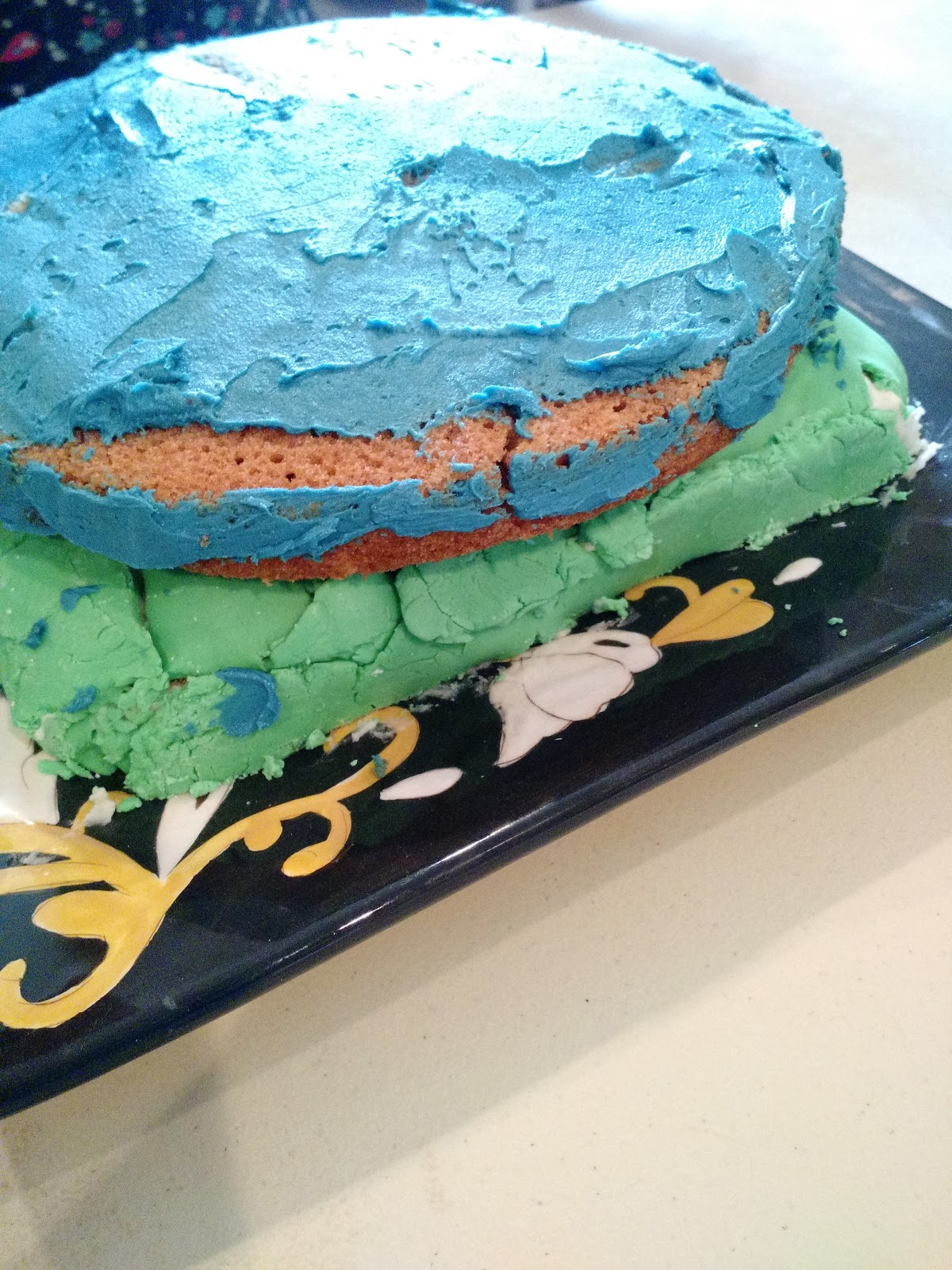 So CeeCee (the 9 year old, name changed to protect me) has joined in with us watching whichever shows strikes our fancy collectively. What has become her favorite and possibly a new obsession is Next Great Baker. This photo is her first cake design. CeeCee wants to make a cake welcoming her mom and siblings home. And she wants to make this cake.